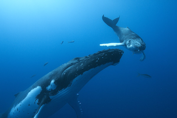 Après qu’une baleine à bosse s’est échouée sur un rivage, des humains tentent de la…